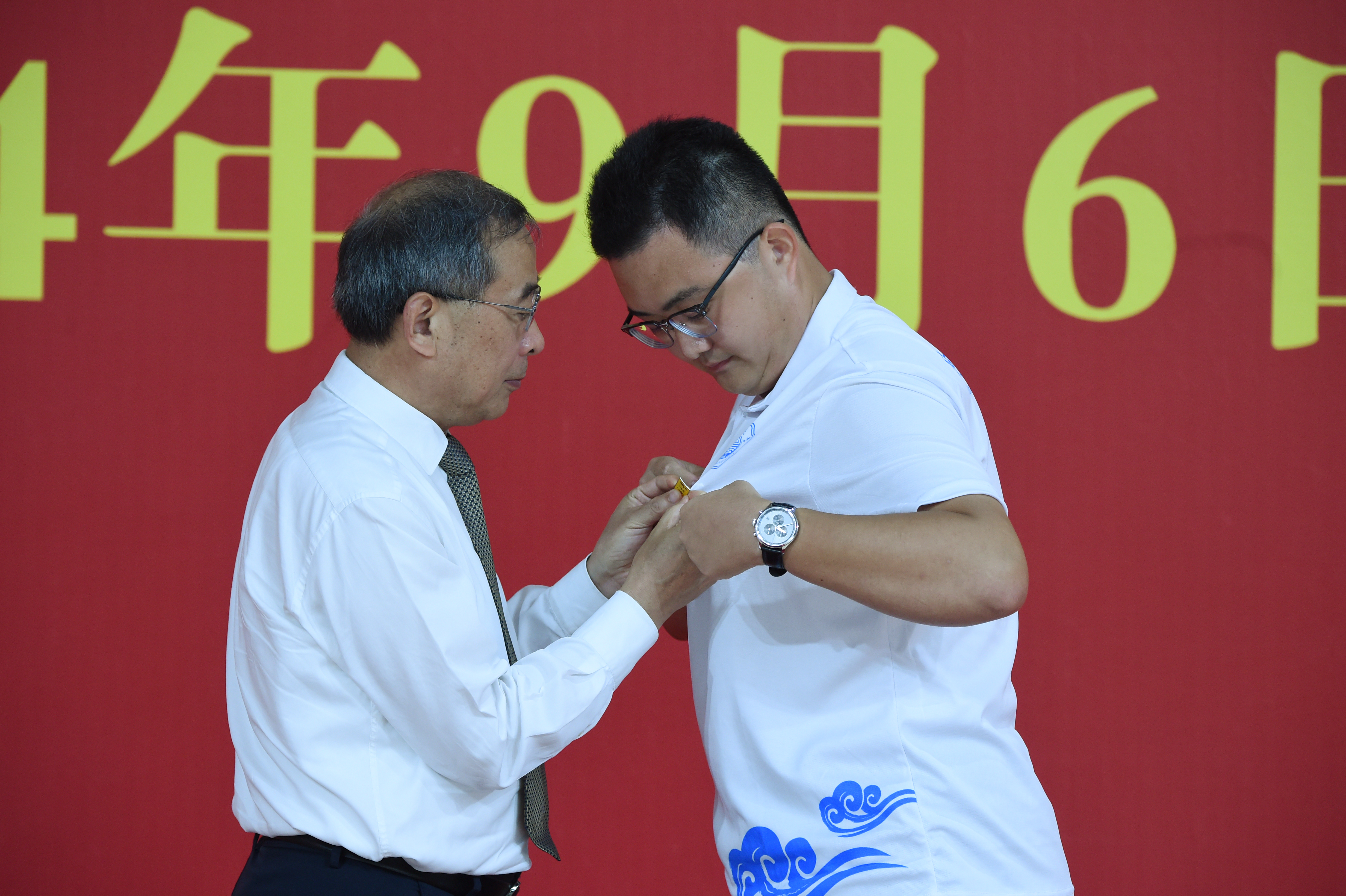 杨桂山为研究生新生代表水文水资源学院2024级硕士研究生崔腾飞佩戴校徽