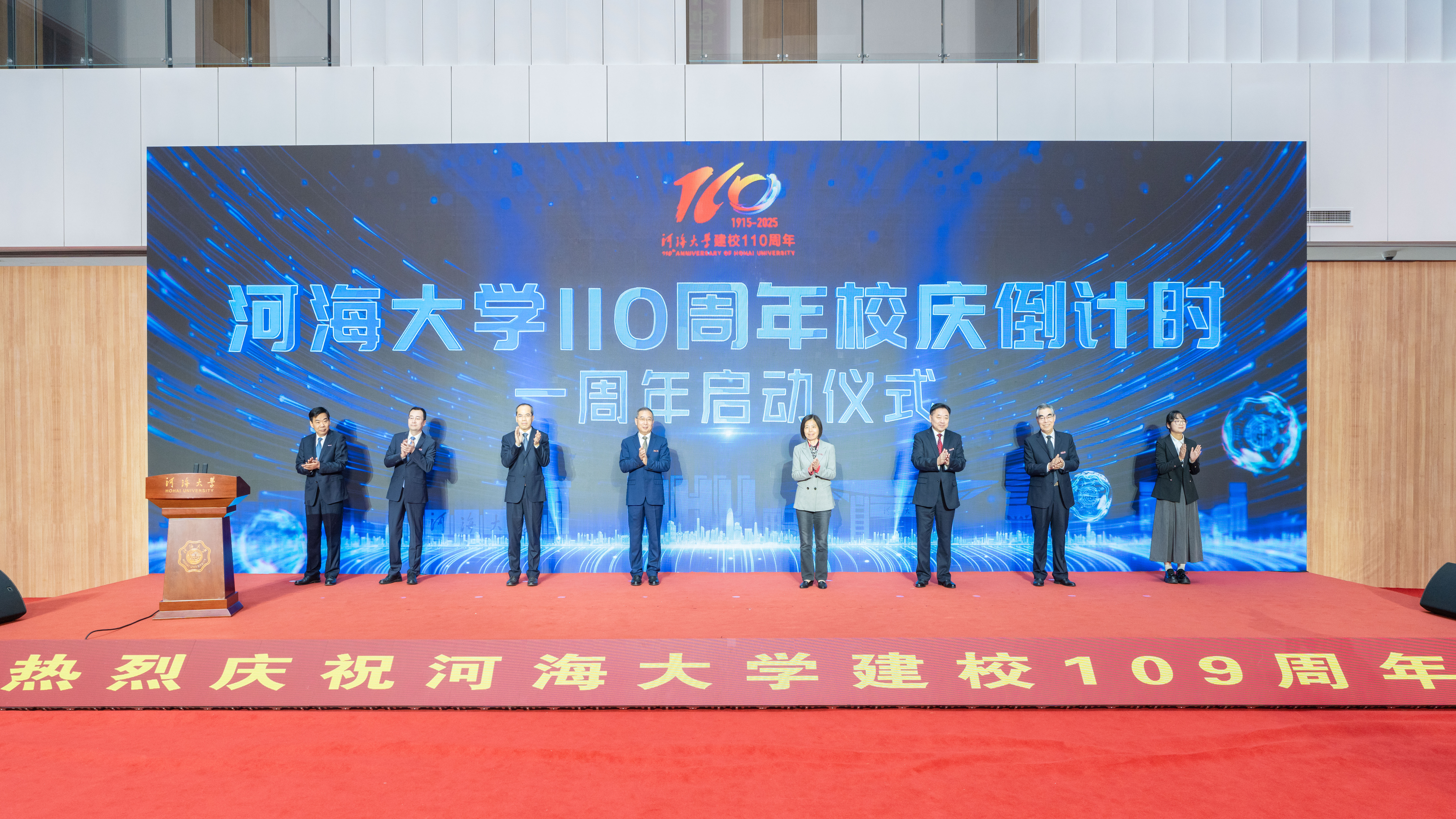 郑金海在主持讲话中表示,109载风雨兼程、砥砺奋进,一代又一代河海人赓续奋斗、勇毅前行,蹚出一条扎根中国大地、深耕江河湖海、服务水利发展最前沿的特色发展道路,为以水安全保障中华民族永续发展、推动水利高等教育高质量发展作出了卓越贡献,正朝着高质量开创世界一流特色研究型大学建设新局面阔步迈进。百十华诞是学校发展史上的重要里程碑,更是学校事业发展承前启后、继往开来的历史见证。他指出,办好百十校庆,是广大师生员工、海内外校友的殷切期望,是对教育初心使命的再思考、对学校事业发展的再升华、对全面深化改革的再出发,要以强烈的使命感、高度的责任感,高标准筹备各项工作,向社会各界呈现一场简朴隆重、热烈祥和的盛会。