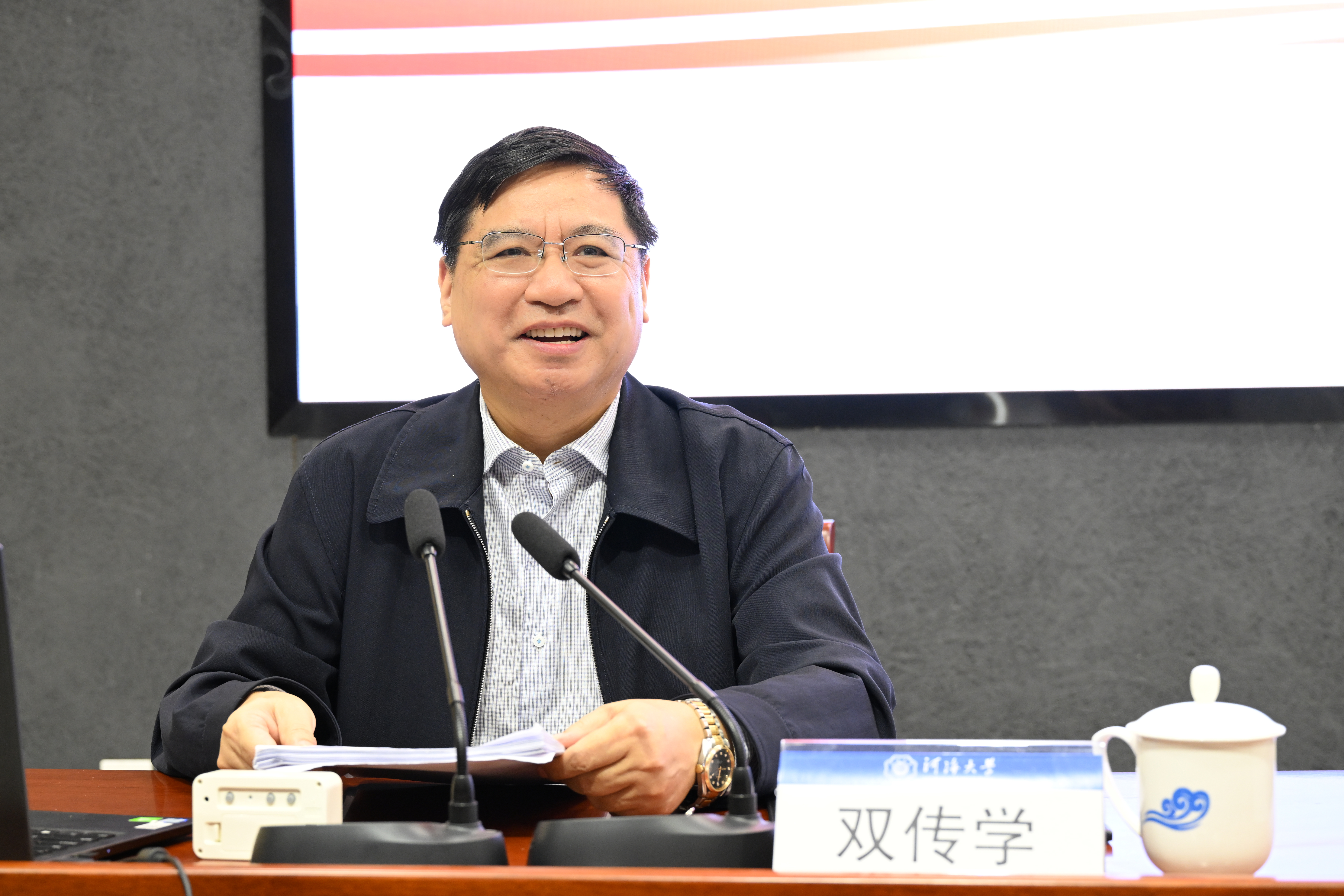双传学在报告中对深刻领会习近平总书记关于全面深化改革的一系列新思想、新观点、新论断的重大意义、丰富内涵和实践要求等方面进行了系统阐释和深入解读。他指出,习近平总书记关于全面深化改革的一系列新思想、新观点、新论断,是新时代全面深化改革理论创新的最新成果,是进一步全面深化改革的行动指南。学好用好这些新思想、新观点、新论断,对于统一和引领全党全国各族人民思想和行动,以更加奋发有为的精神状态进一步全面深化改革,具有重要意义。高举中国特色社会主义伟大旗帜,做习近平新时代中国特色社会主义思想的坚定信仰者和忠实实践者,坚定信心、同心同德,以身作则、以上率下,为全面建设社会主义现代化国家、全面推进中华民族伟大复兴作出应有的贡献!