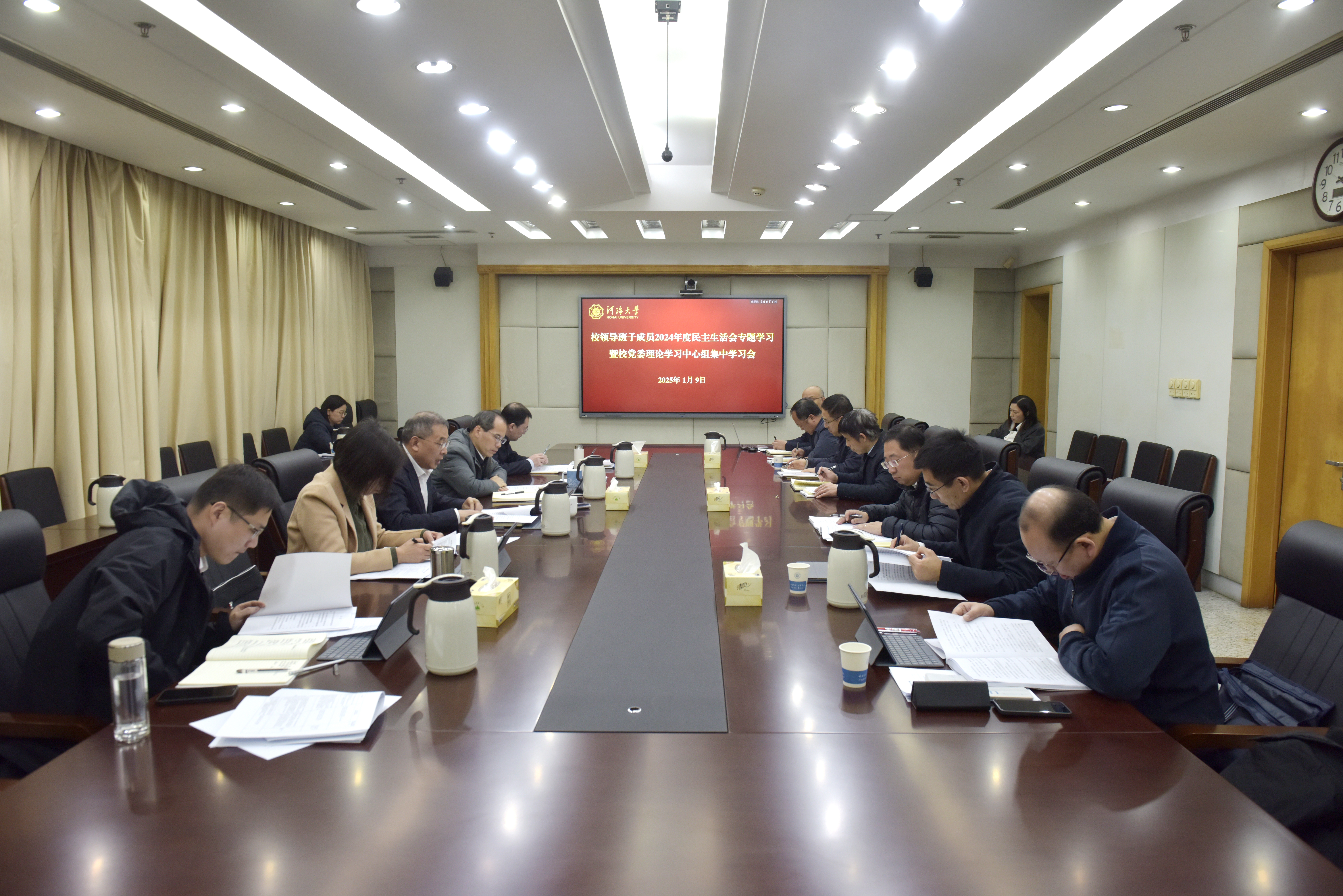 会议强调,要把锤炼党性、提高思想觉悟作为终身课题,坚持用习近平新时代中国特色社会主义思想铸魂育人,校领导要带头进一步深刻领悟“两个确立”的决定性意义,做到“两个维护”。要巩固深化党纪学习教育成果,建立经常性和集中性相结合的纪律教育机制,巩固风清气正的良好政治生态和育人环境。要严格执行党的纪律,推动全面从严治党向纵深发展,把党的纪律和干事创业内在统一起来,落实到教育强国建设、学校高质量发展实践中,砥砺进取、锐意创新,奋力书写“教育强国 河海何为”的时代答卷。要高标准开好党员领导干部民主生活会,不断提高对国家重大理论和教育强国各项改革举措的认识、提升办学治校能力和履职能力,推进学校工作内涵发展,为教育强国建设贡献力量。