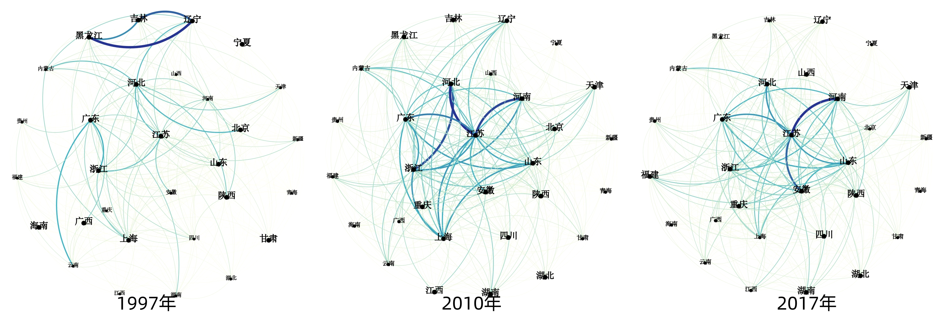 图1 技术互补与省际贸易流动网络分布:高技术行业