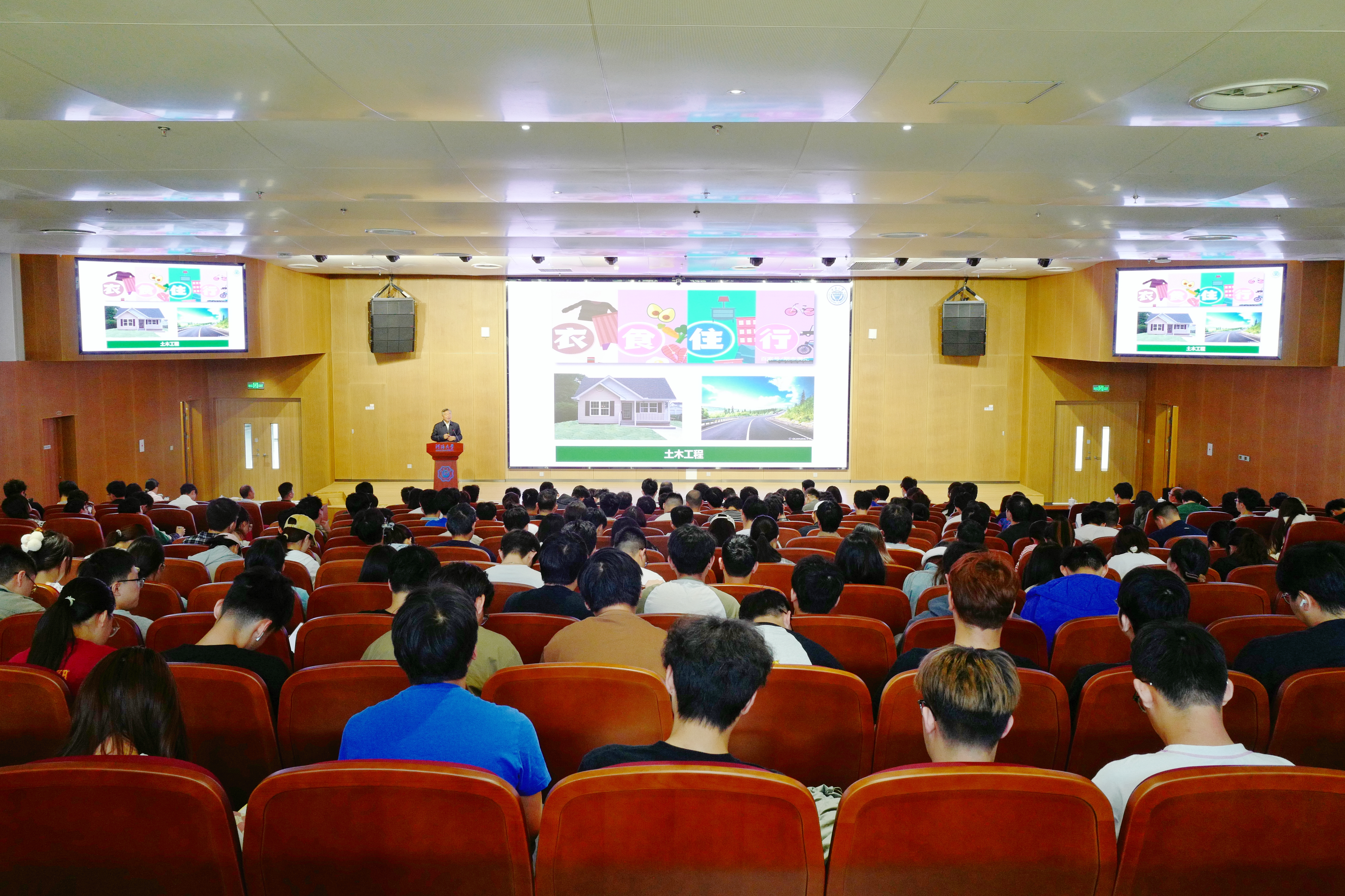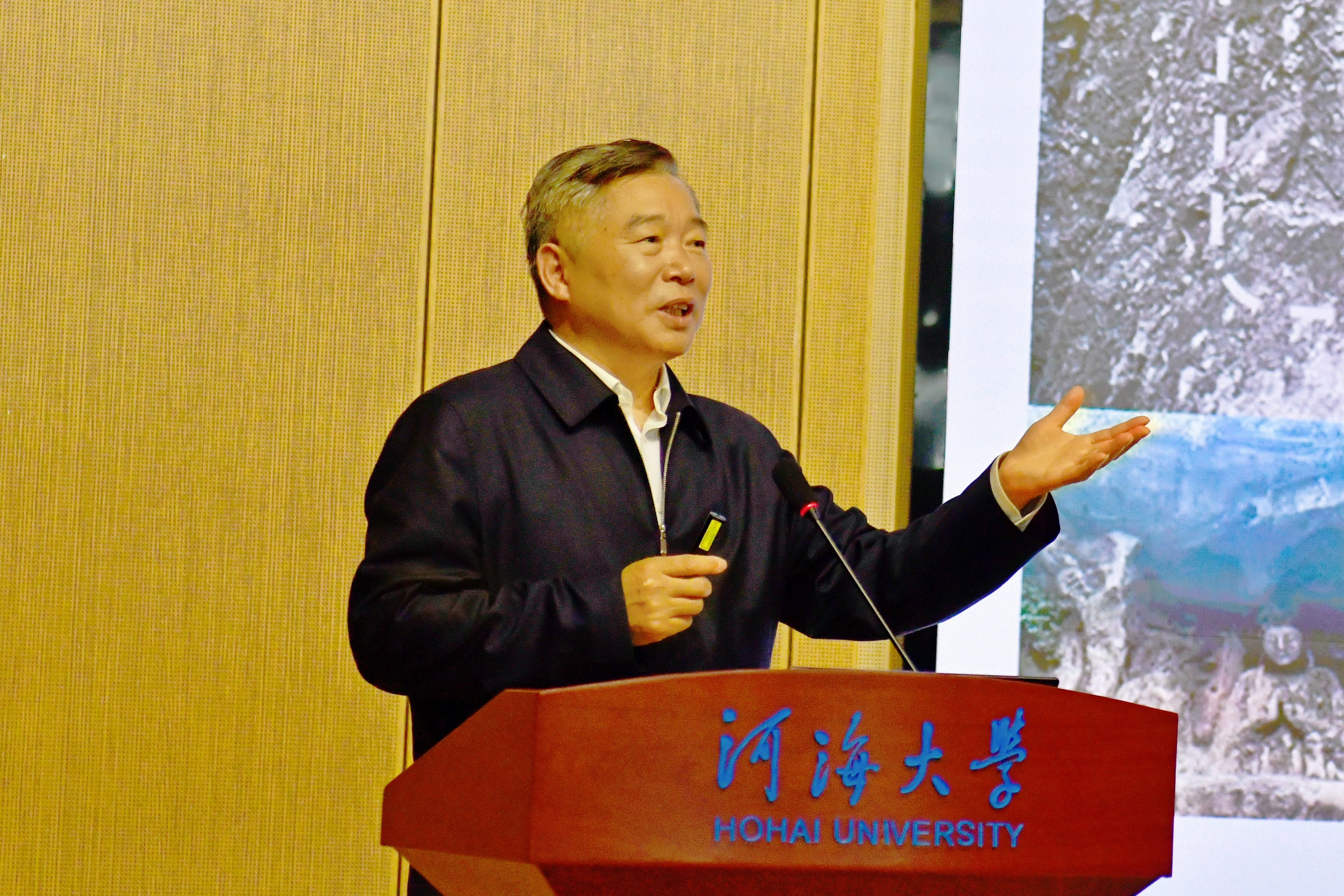 刘汉龙立足土木工程建造技术发展现状和技术转型需求,深入阐释了人与自然和谐共生的生物建造概念及其深刻内涵。他以微生物建造、植物建造、动物建造和仿生建造为脉络,从理论创新、技术突破、材料研发、装备升级到实际工程案例,全方位、多角度地展现了生物建造体系的完整架构,通过丰富详实的案例与深入浅出的讲解,勾勒出生物建造的广阔发展前景。同时,他殷切号召河海师生,积极拥抱学科交叉融合,在生物建造领域勇于探索创新,为推动行业变革贡献智慧与力量。